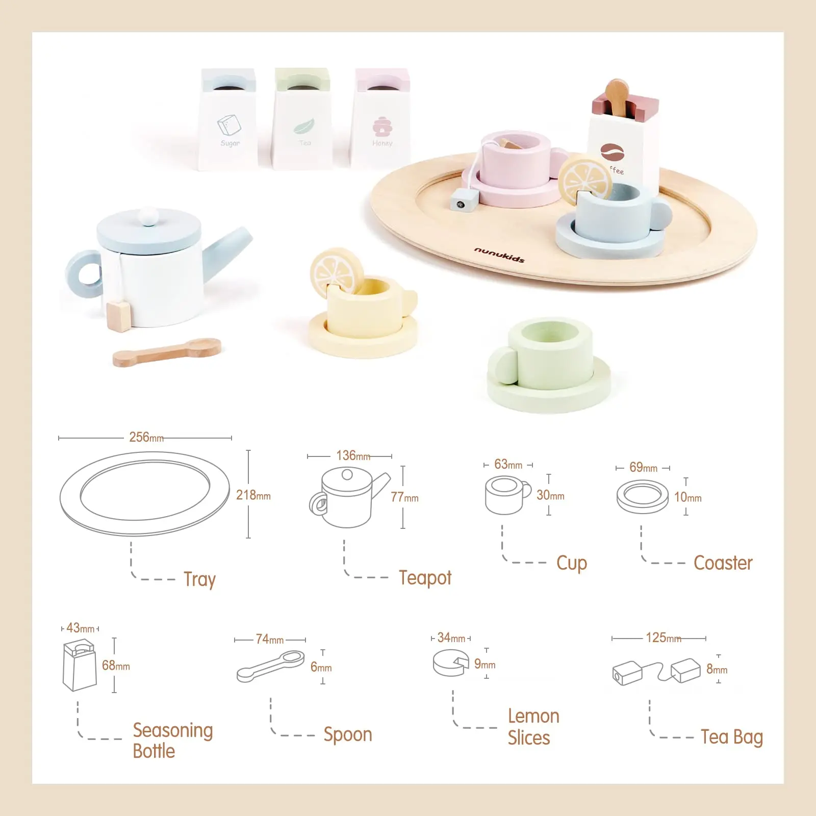 Wooden Tea Set for Little Girls - 20Pcs Tea Party Toys Set - Toddler Play Kitchen Accessories Play Food Toy for Kids Boys Girls
